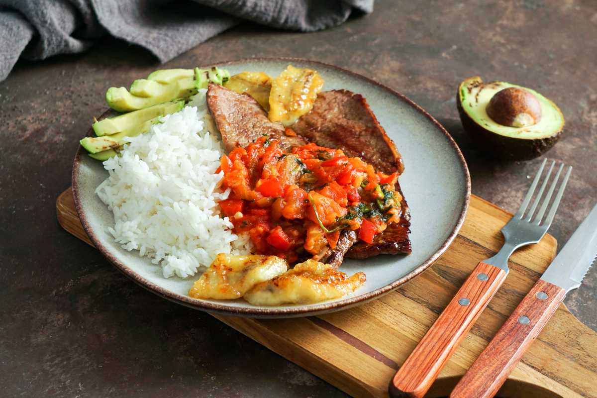 Agregamos media cerveza, papa pelada y picada en trozos y dejamos pitar nuevamente por 10 minutos y la sobrebarriga en salsa estará lista para servir. Lo acompañamos con arroz blanco.
